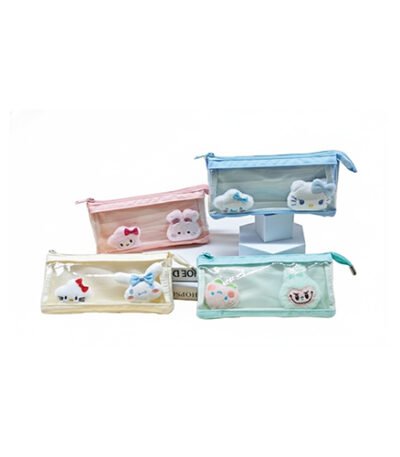 Cute Cartoon Transparent PVC Pencil Pouch with Plush Toy