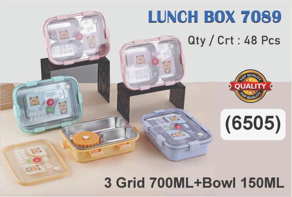Make mealtime fun and organized with the Lunch Box 7089 featuring an adorable Bear Family design. This premium quality lunch box comes with 3 spacious grid compartments totaling 700ML capacity for your main meal, plus a separate 150ML bowl for soup, yogurt, or snacks.