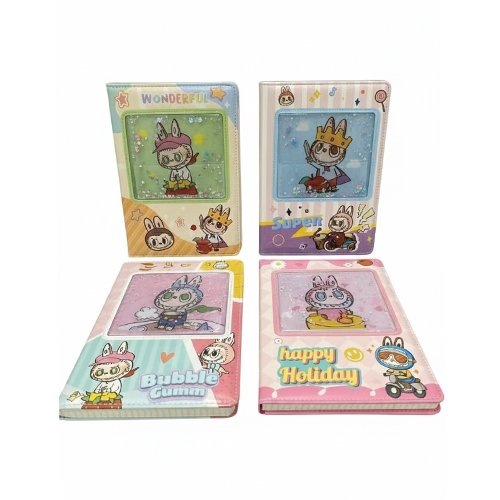 The Cute Bunny Glitter Shaker Notebook is a charming stationery item designed to make writing fun and exciting for kids and cute-stationery lovers. Featuring an adorable bunny character with a glitter shaker front window, this cartoon glitter notebook sparkles beautifully when moved, instantly catching attention. Each notebook comes in cheerful pastel themes with fun phrases like Wonderful, Super, Bubble Gummi, and Happy Holiday.