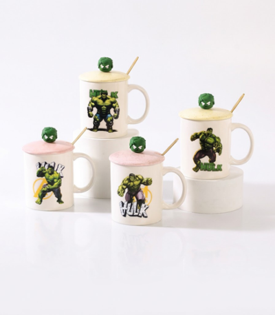 Ceramic mug featuring cute Hulk character artwork.