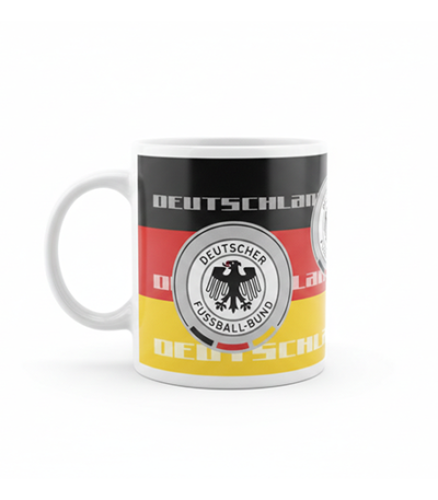 Ceramic mug with Germany-inspired artwork and design.